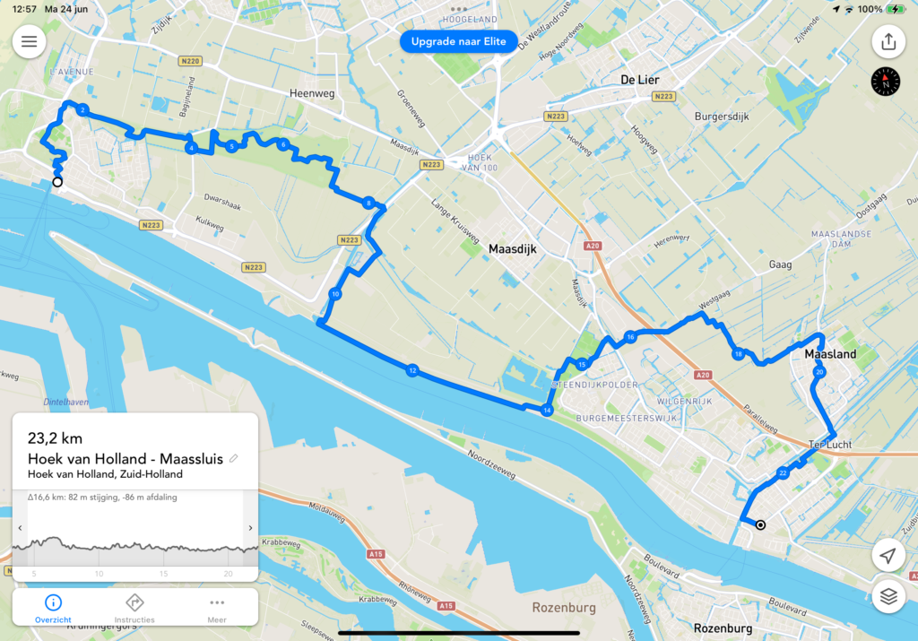 Van startpunt GR5 in Hoek van Holland (punt 1 in de wandelgids) naar station Maassluis (nabij punt 4 in wandelgids), in totaal 23.2 kilometer.