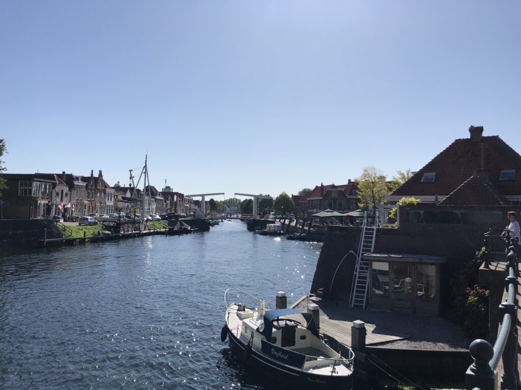 We lopen inmiddels over de rug van een dijk door het gras en kunnen heel in de verte Brielle al zien liggen. Da’s maar goed ook, want de wandelschoenen beginnen aardig te knellen door de opgezette voeten. Weer een reminder om andere schoenen te gaan kopen. Het is lekker warm en om wat bij te bruinen loop ik het laatste stukje over de dijk zonder shirt. Nog even een boeren statieportret bij een hooibaal en dan stappen we het fietspad op richting de wallen van Brielle. De route leidt ons eerst langs de buitenkant van de vesting, maar al snel stappen we via een poort het voor de Nederlandse geschiedenis beroemde stadje in. Om de Brielse Dom heen lopen we verder naar het centrum. Het eindpunt van onze wandeling.