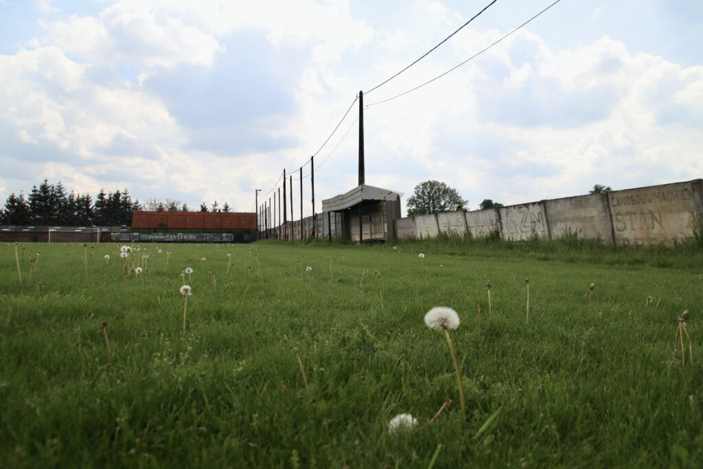 Kort voor ons eindpunt komen we nog langs een voetbalveld dat duidelijk betere tijden heeft gekend. Het lijkt wel of we terug zijn in de jaren ’80. Het geeft wel leuke foto’s. Na nog een groot Bhoeda beeld onder een afdak gepasseerd te zijn komen we al snel bij trein station Brecht aan.