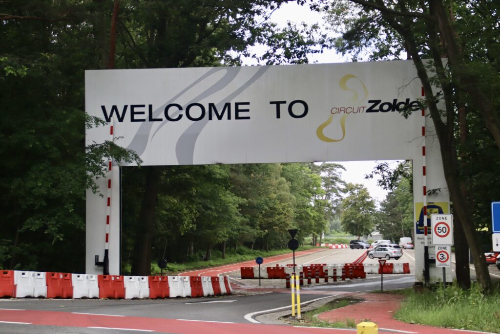 We lopen weer verder en komen even later direct langs het circuit te lopen. Een geluidswal om het circuit heen belemmert het zicht. We lopen een klein stukje van het pad af om toch een vrij uitzicht te hebben en wat foto’s te maken. Motoren razen over het asfalt.