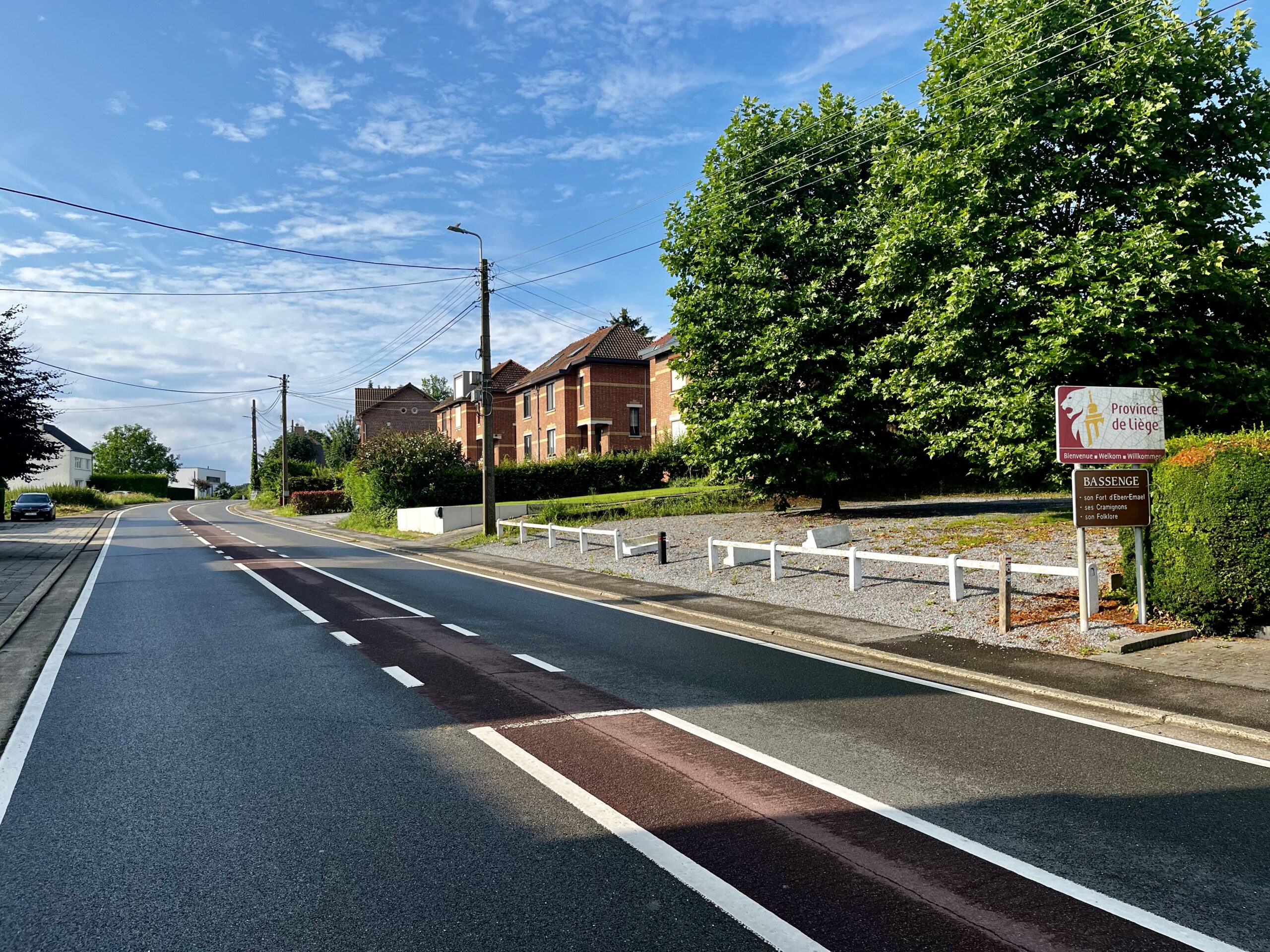 Auto langs de straat geparkeerd in Visé in de buurt van bushalte.